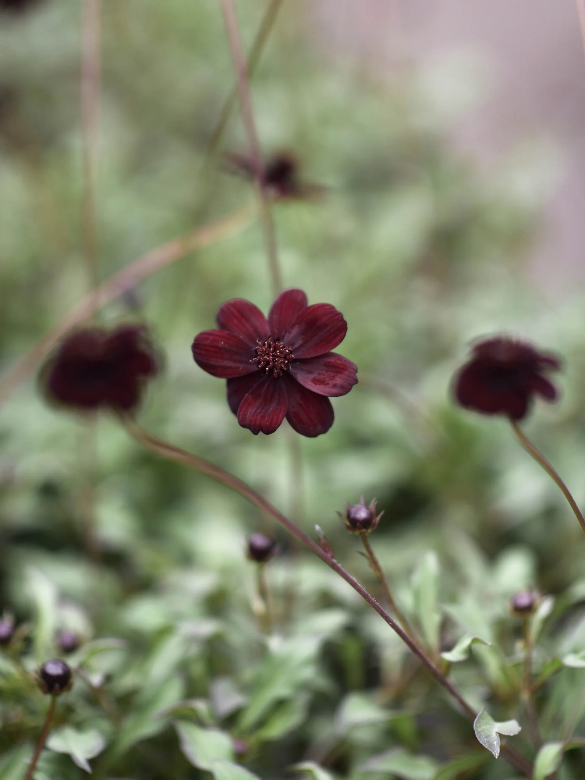 Blomning: Mörkt purpurfärgade blommor som doftar svagt av choklad. Blommar från maj till oktober.
