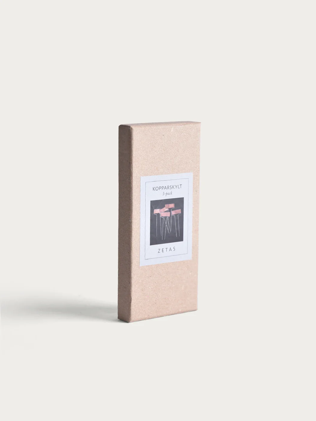 En elegant kopparskylt för att märka upp dina odlingar och planteringar. Passar perfekt att sätta i jorden under hela trädgårdssäsongen. Skriv med en vattenfast tuschpenna. (Går bra att ta bort skriven text med vanligt suddgummi om du inte vill ha texten permanent). Levereras i en vacker kartong.