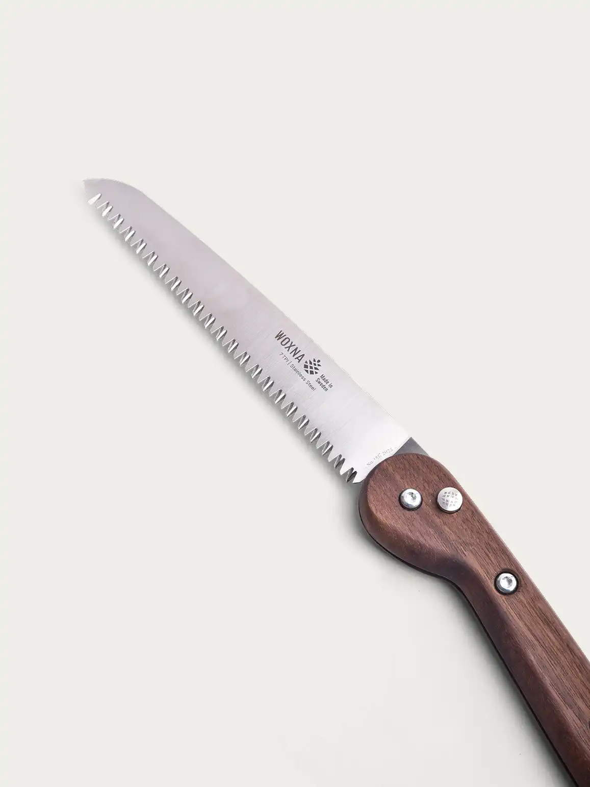 Såg 'Ljusnan' Rostfritt Stål - Valnöt är en elegant och effektiv trädgårdssåg som kombinerar skandinavisk design med hög funktionalitet. Tillverkad i rostfritt stål av hög kvalitet och har ett greppvänligt handtag i oljad valnöt, vilket ger både komfort och stil under arbetet i trädgården.